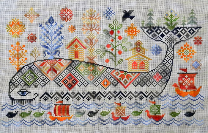 Monochrome embroidery landscape